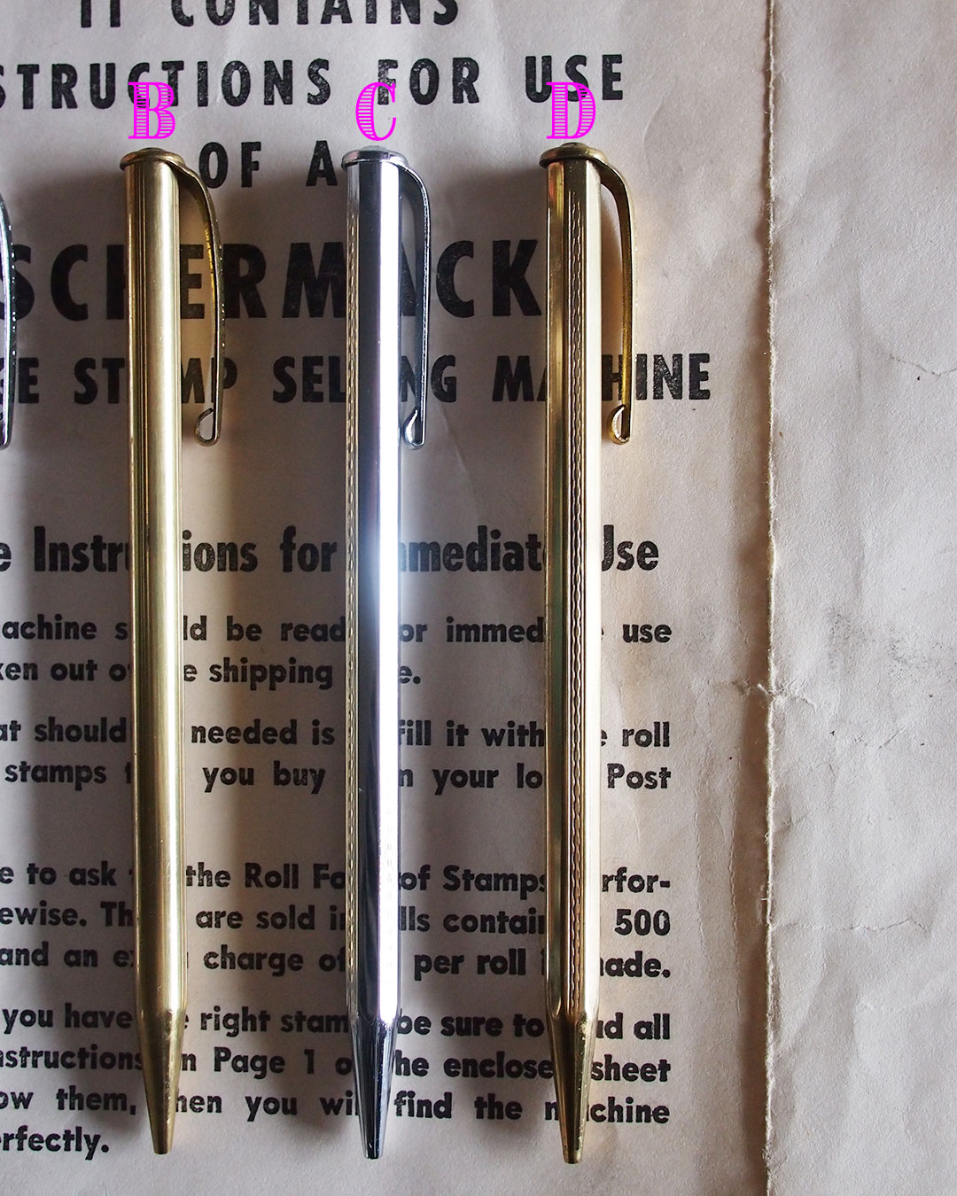 Aはペン先辺りのメッキが剥げており、回転も少々ひっかかりあります。