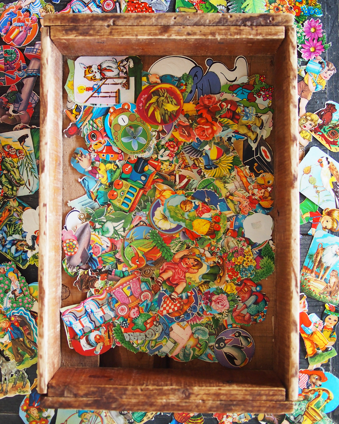 箱やノート、アルバムなどに貼って楽しむ “コラージュ素材の元祖” のような存在で、長く愛されてきました。