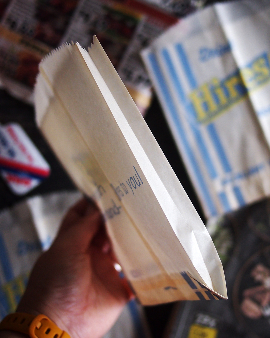 紙は耐油紙で、中が少々透ける程薄い袋です。