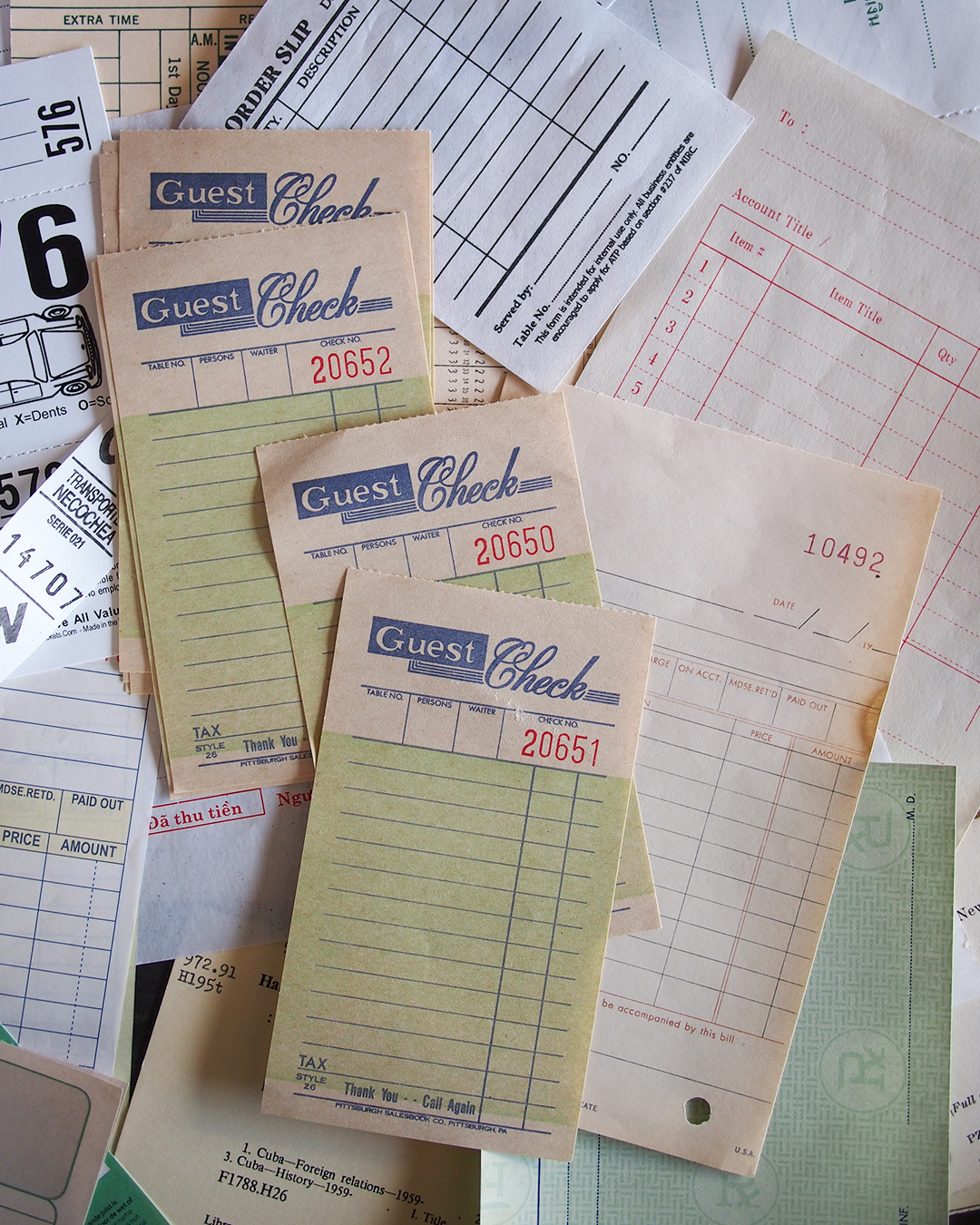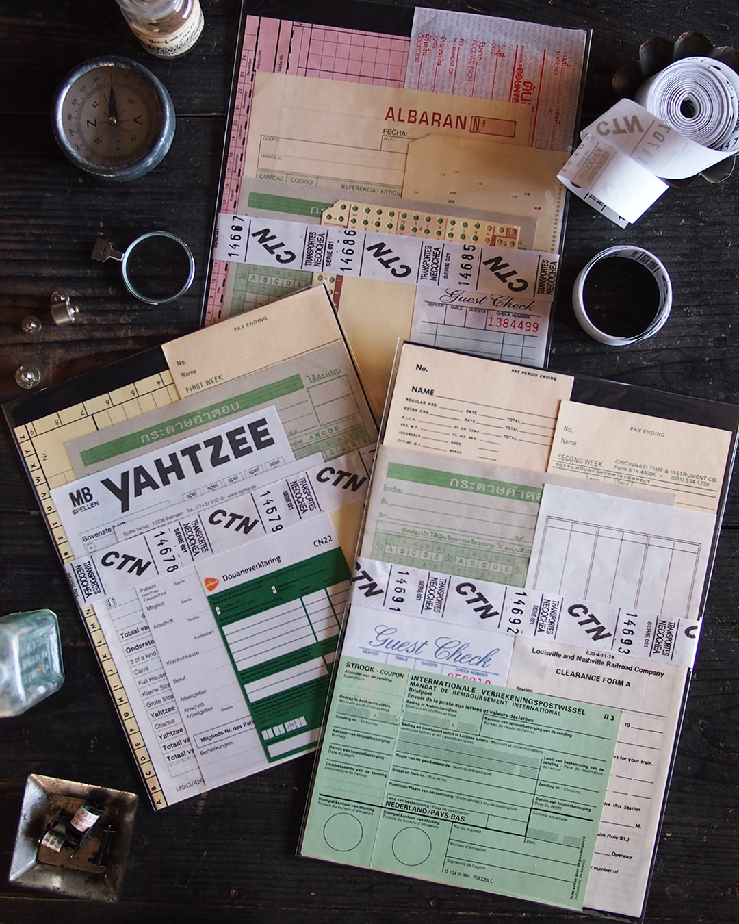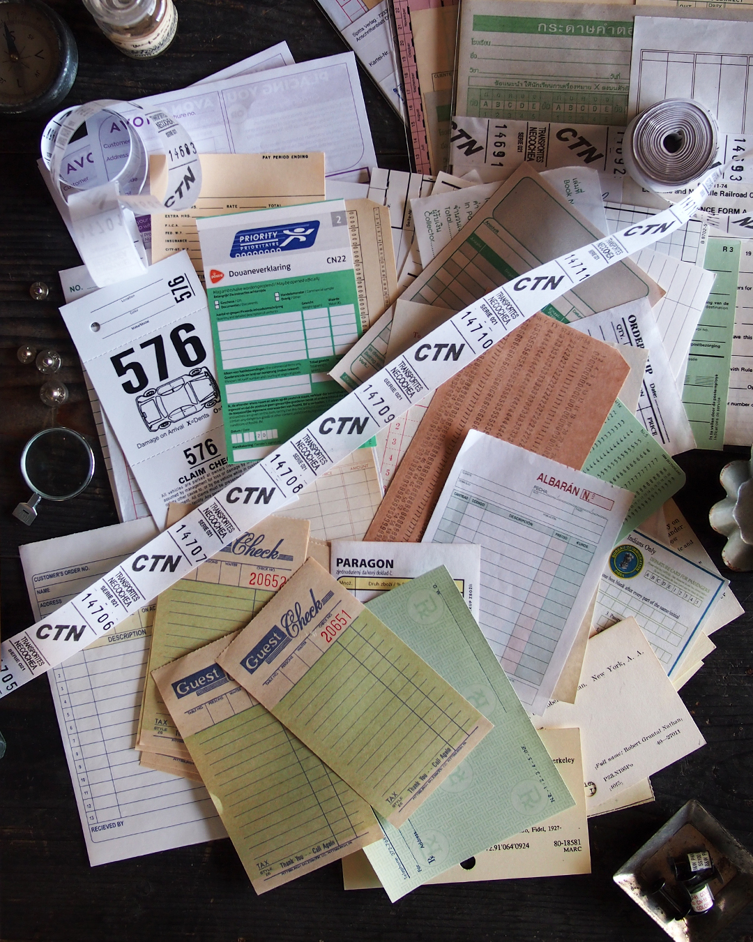 伝票は色々な国の注文書や、申請書など。